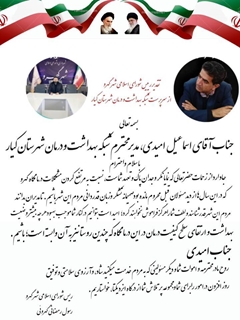 پیام تشکر وقدردانی رئیس شورای اسلامی شهر گهرو از مهندس اسماعیل امیدی ریاست محترم شبکه بهداشت و درمان شهرستان کیار